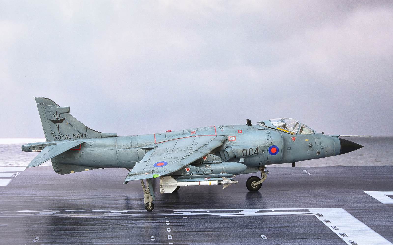 Der British Aerospace Sea Harrier wurde in den 1970er Jahren als Marinevariante des Harrier entwickelt, um der Royal Navy ein Kurzstart- und Senkrechtlandungsflugzeug (STOVL) zur Verfügung zu stellen, das von kleineren Flugzeugträgern aus operieren konnte, ohne dass Katapulte oder Fangseile erforderlich waren. Sein Hauptzweck bestand darin, die Luftverteidigung für Einsatzgruppen der Royal Navy zu gewährleisten, insbesondere zum Schutz von Flotteneinheiten vor feindlichen Flugzeugen und Raketen, während er gleichzeitig Aufklärungs- und Angriffsaufgaben übernahm. Der Sea Harrier war mit dem Ferranti Blue Fox-Radar und korrosionsbeständigen Beschichtungen für den Einsatz auf See ausgestattet und war insbesondere das erste VTOL-Flugzeug mit festen Tragflächen, das vollständig bei einer Marine einsatzbereit war.