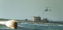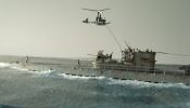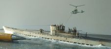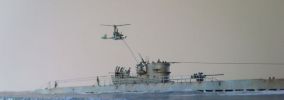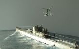 Dieses deutsche U-Boot des Typs IX hat Werner De Keersmaecker aus dem HobbyBoss Bausatz gebaut. Der Focke-Achgelis Fa 330 Kleintraghubschrauber ist ein Eigenbau, während die Figuren von L'Arsenal stammen: