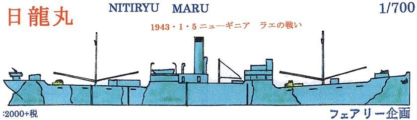 Die spätere Nitiryu Maru (auch Nichiryu Maru) – das im Bausatz dargestellte Schiff – wurde im Mai 1919 in Dienst gestellt und später von der Armee beschlagnahmt. Während der „Operation 18“, einem Nachschub-Konvoi für die Garnison in Lae, wurde sie am 6. Januar 1943 durch Bomben alliierter Flugzeuge versenkt. Von den 1.100 Soldaten an Bord konnten 739 durch begleitende Zerstörer gerettet werden.