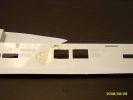 Am Rumpf, speziell der Backbordseite, musste ich ebenfalls Änderungen vornehmen. Den Ausleger im Bootsbereich nahm ich weg und änderte die Öffnungen ab, um eine Barkasse anstatt des Dinghis unterzubringen.