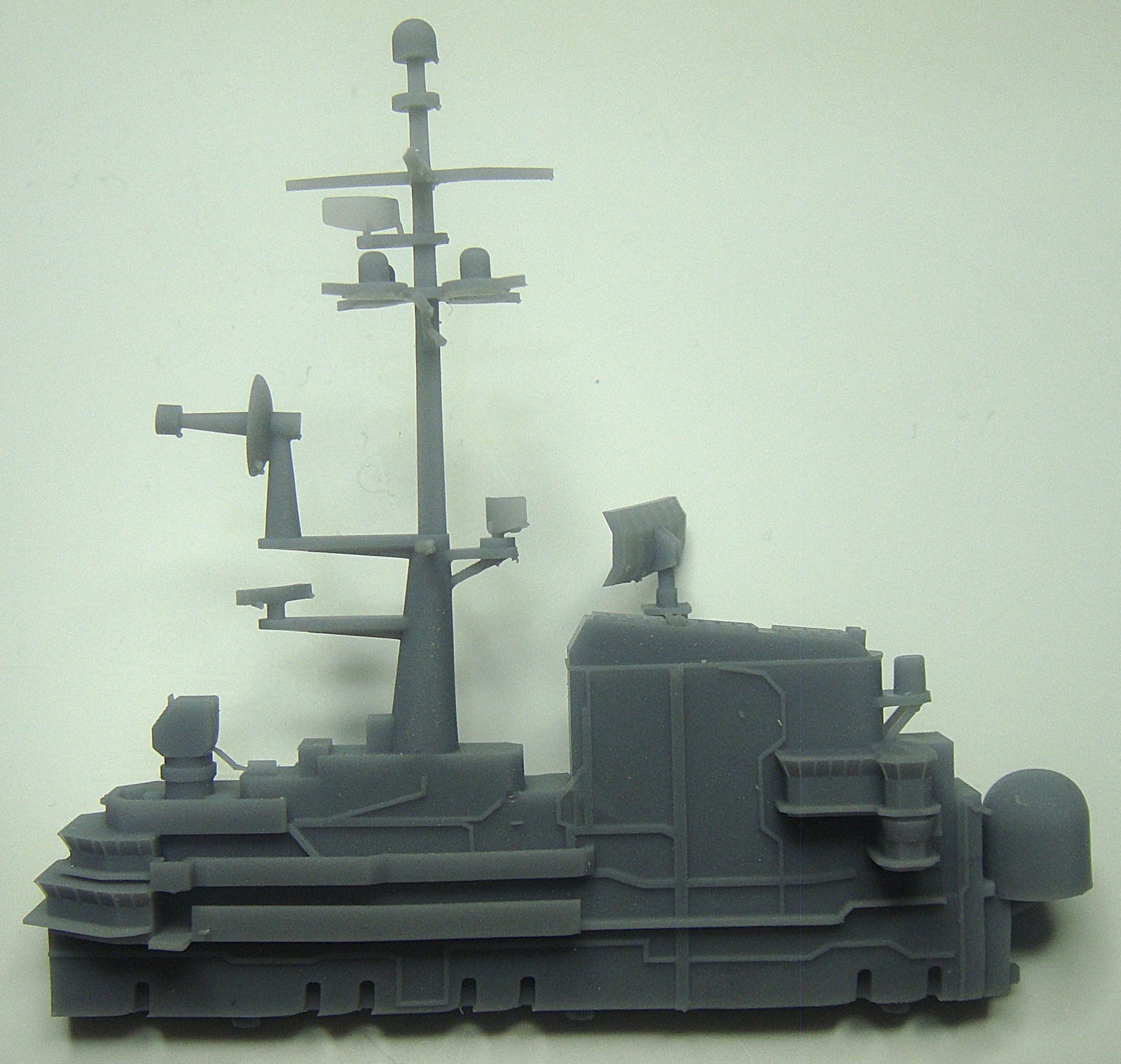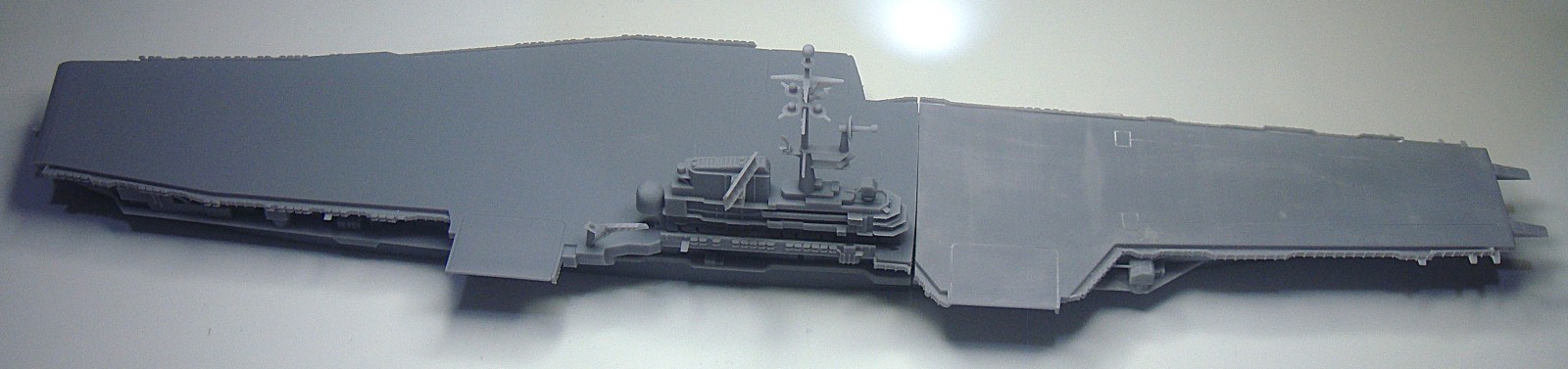 Wie bei der Coral Sea ist der 3D-Druck sehr sauber ausgeführt. Der Rumpf ist in zwei Sektionen gedruckt, die mittels Passstiften miteinander verbunden werden. Das verwendete Druckmaterial ist zwar relativ weich, zugleich aber sehr spröde. Daher ist bei etwaigen Umbauten oder Anpassungen große Vorsicht geboten.