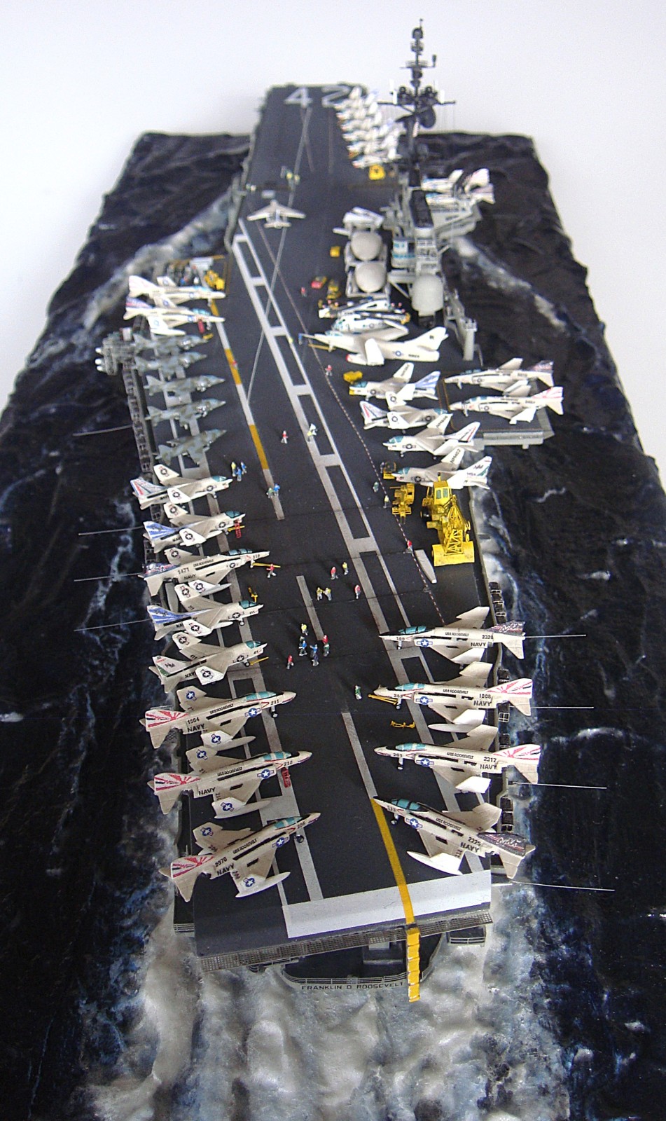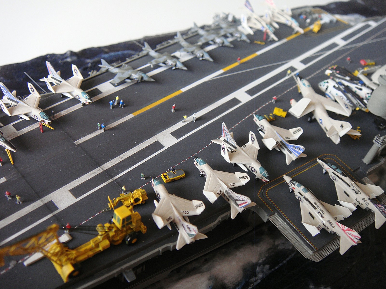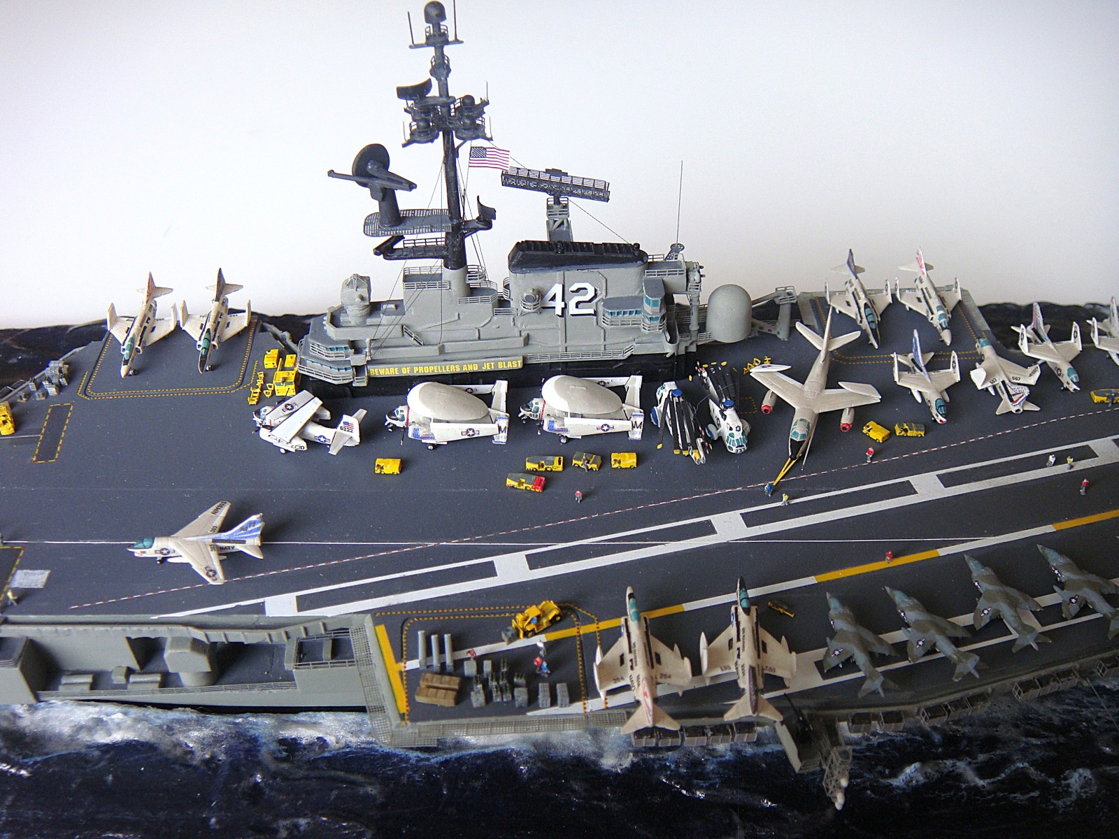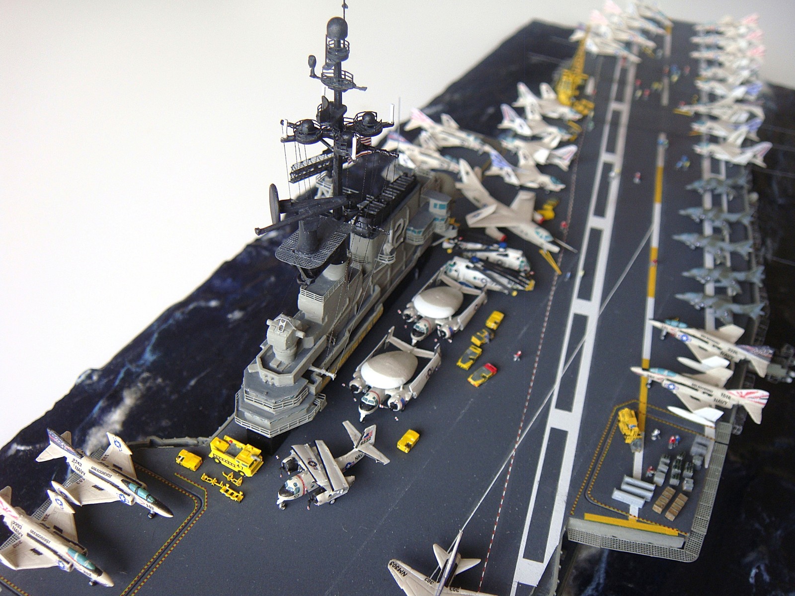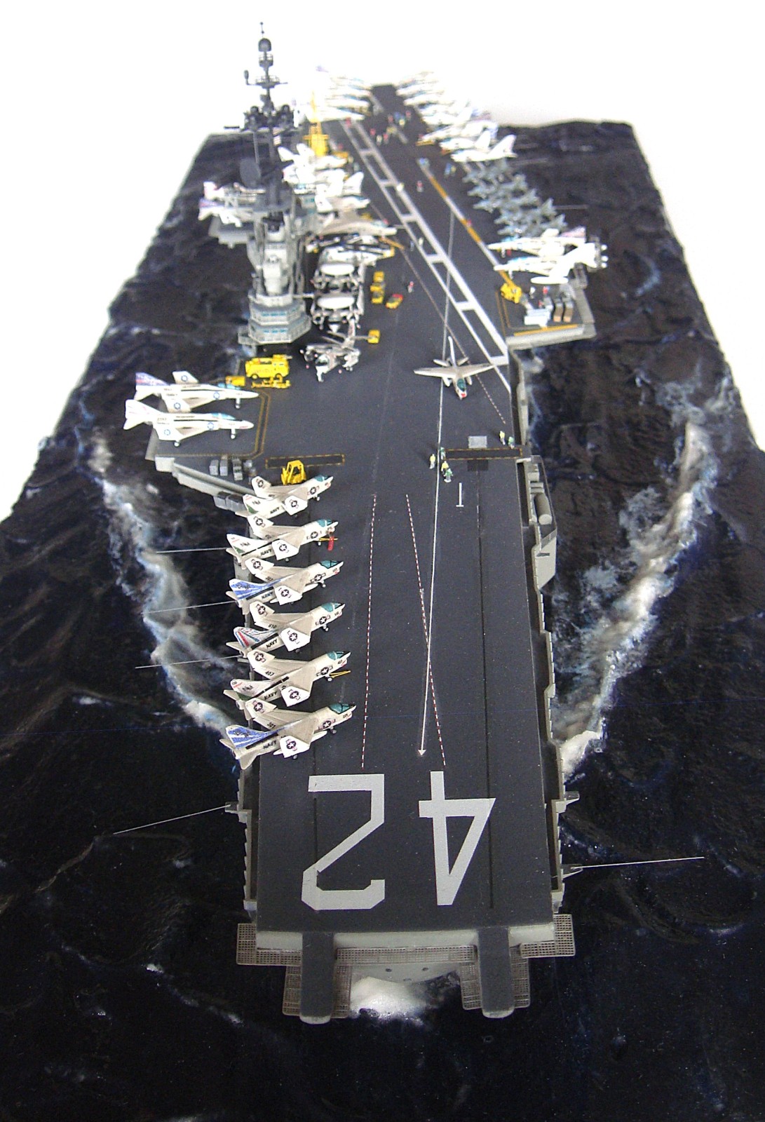 Die Flugzeuge bestehen überwiegend aus Kunststoffteilen von Trumpeter; OrangeHobby und L’Arsenal steuern die übrigen Maschinen bei. Eine der interessanteren Besonderheiten während der letzten Indienststellung war, dass die Grumman Intruder durch AV-8A Harrier ersetzt worden waren, die sich in der Erprobung befanden. Ein eher ungewöhnlicher Flugzeugtyp für einen großen US-amerikanischen Flugzeugträger. Diese Modelle wurden von L’Arsenal sehr schön umgesetzt.