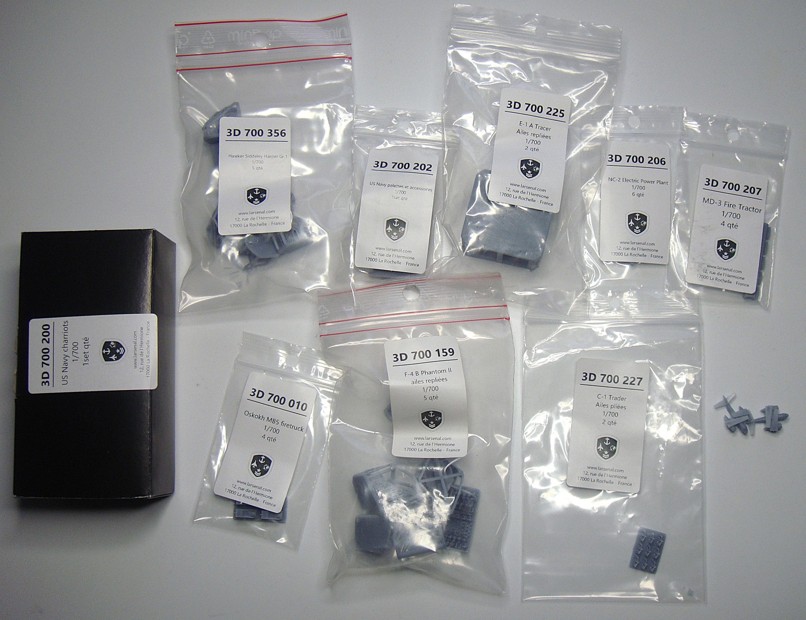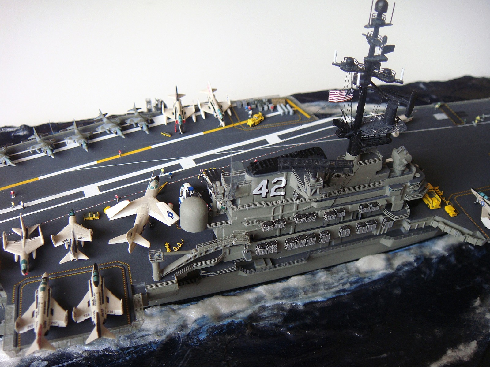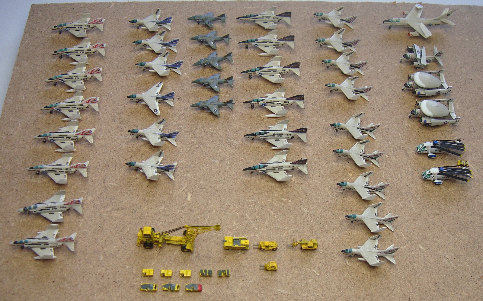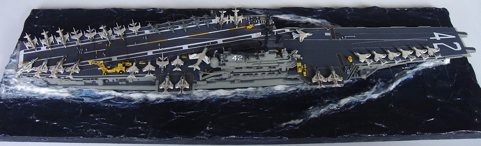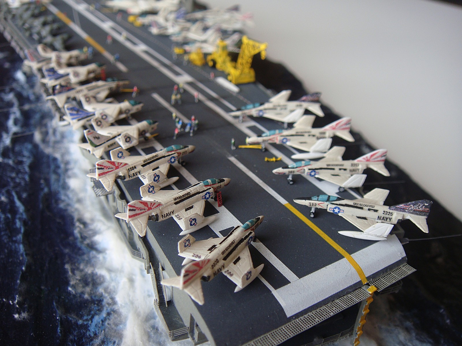 Die Flugzeuge bestehen überwiegend aus Kunststoffteilen von Trumpeter; OrangeHobby und L’Arsenal steuern die übrigen Maschinen bei. Eine der interessanteren Besonderheiten während der letzten Indienststellung war, dass die Grumman Intruder durch AV-8A Harrier ersetzt worden waren, die sich in der Erprobung befanden. Ein eher ungewöhnlicher Flugzeugtyp für einen großen US-amerikanischen Flugzeugträger. Diese Modelle wurden von L’Arsenal sehr schön umgesetzt.