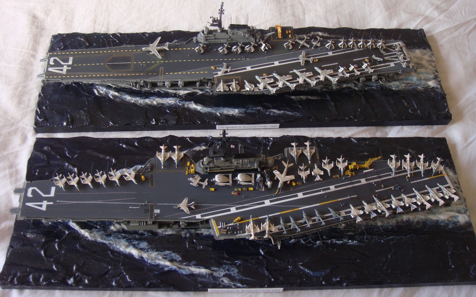 Die abschließenden Fotos zeigen die Franklin D. Roosevelt von 1976/77 neben ihr im Bauzustand von 1957 von Tom's Modelworks
