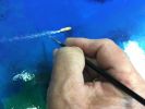 Nach ein paar Tagen Durchtrocknen wurde dann die erste Schicht hochglänzender Klarlack aufgetragen. Nach leichtem Antrocknen wurde die nächste Schicht wieder „stippelnd“ aufgebracht, um einen leichten Kräuseleffekt auf der Wasseroberfläche zu erzielen. Nach dem Durchtrocknen und -härten der ersten beiden Klarlackschichten kam dann die dritte und letzte Schicht drauf.