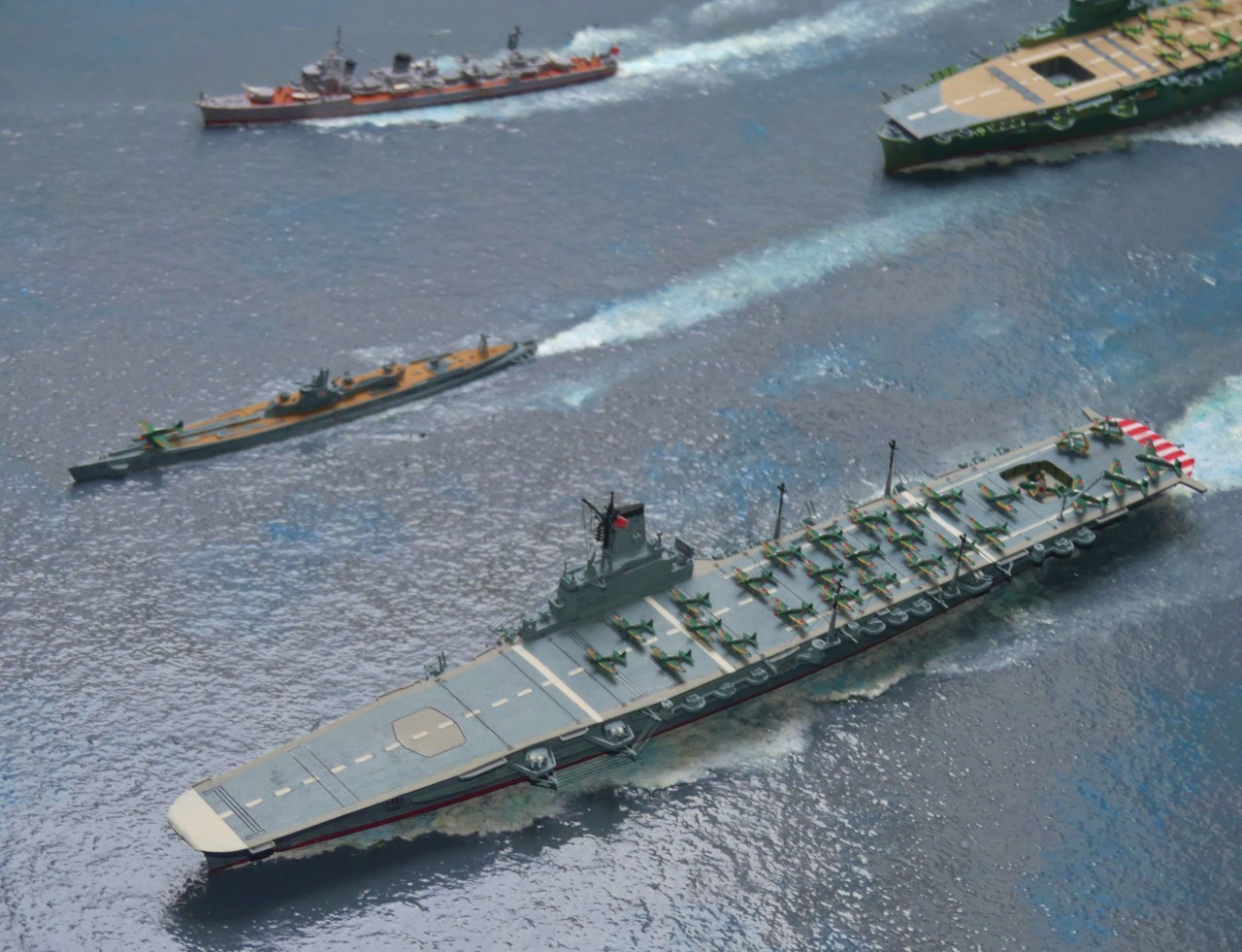 Diese Gedanken kamen mir, als ich nach der Neugestaltung meiner Bastelwerkstatt ein paar überzählige Modelle japanischer Schiffe in den Händen hielt. Es waren die Modelle von Schiffen, die in der Endphase des Pazifikkrieges durch kaum noch vorhandene U-Boot- und Luft-Abwehr, schlecht ausgebildetes Personal, Mangel an Flugzeugen und Piloten und/oder fehlenden Treibstoff und Munition versenkt oder nicht mehr rechtzeitig für effektive Einsätze fertig wurden oder nicht mehr verwendet werden konnten.