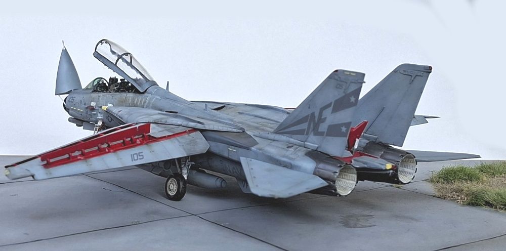 Dargestellt ist die Grumman F-14D Tomcat "105" mit der Baunummer 163418 diente 1995 bei der VF-2 Bounty Hunters und war in Miramar stationiert. Sie wurde zu diesem Zeitpunkt auch von dem Flugzeugträger USS Constellation (CV-64) eingesetzt.